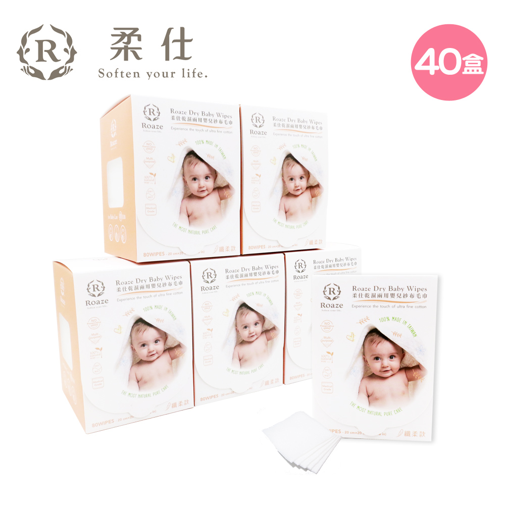 【Roaze 柔仕】MIT乾濕兩用布巾- 纖柔款 40 盒 (80片/盒) |