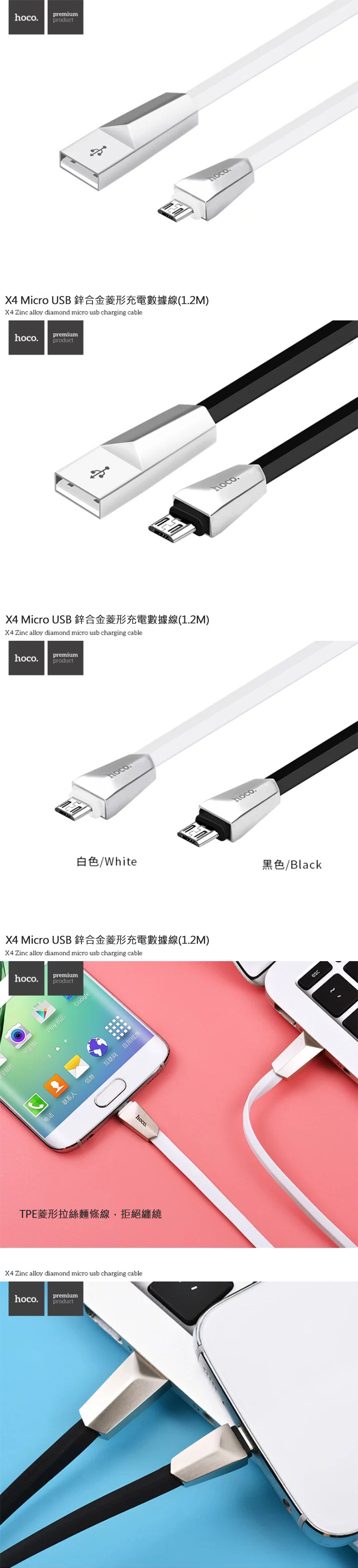 hoco X4 Micro USB 鋅合金菱形充電數據線(1.2M)