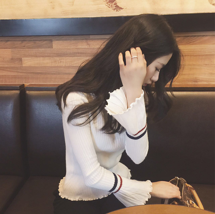VK旗艦店 韓系撞色領喇叭袖針織衫長袖上衣介紹