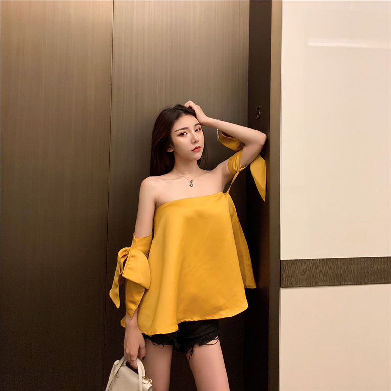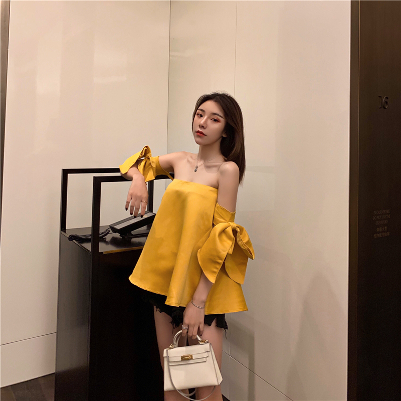VK旗艦店 韓國風蝴蝶結平口一字領短袖上衣