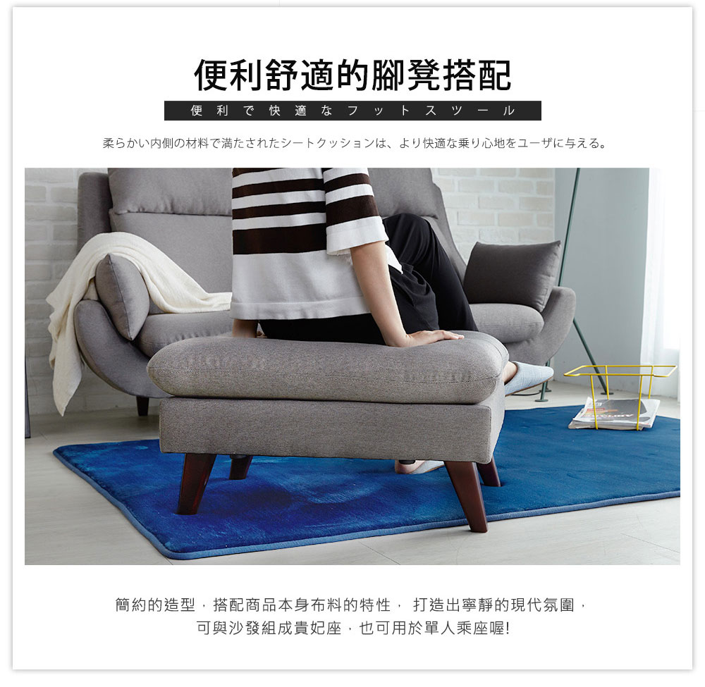 ▶材質說明:沙發:聚酯纖維仿棉麻布手感、泡棉、公仔棉、紙包鋼絲、S形彈簧、實木骨架、木製椅腳腳凳:聚酯纖維仿棉麻布手感、泡棉、實木骨架、木製椅腳